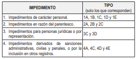 • Los impedimentos referidos a los tipos 3.C y 3.D, así como los impedimentos que se generen por la información proveniente de REDAM, REDERECI y SERVIR.