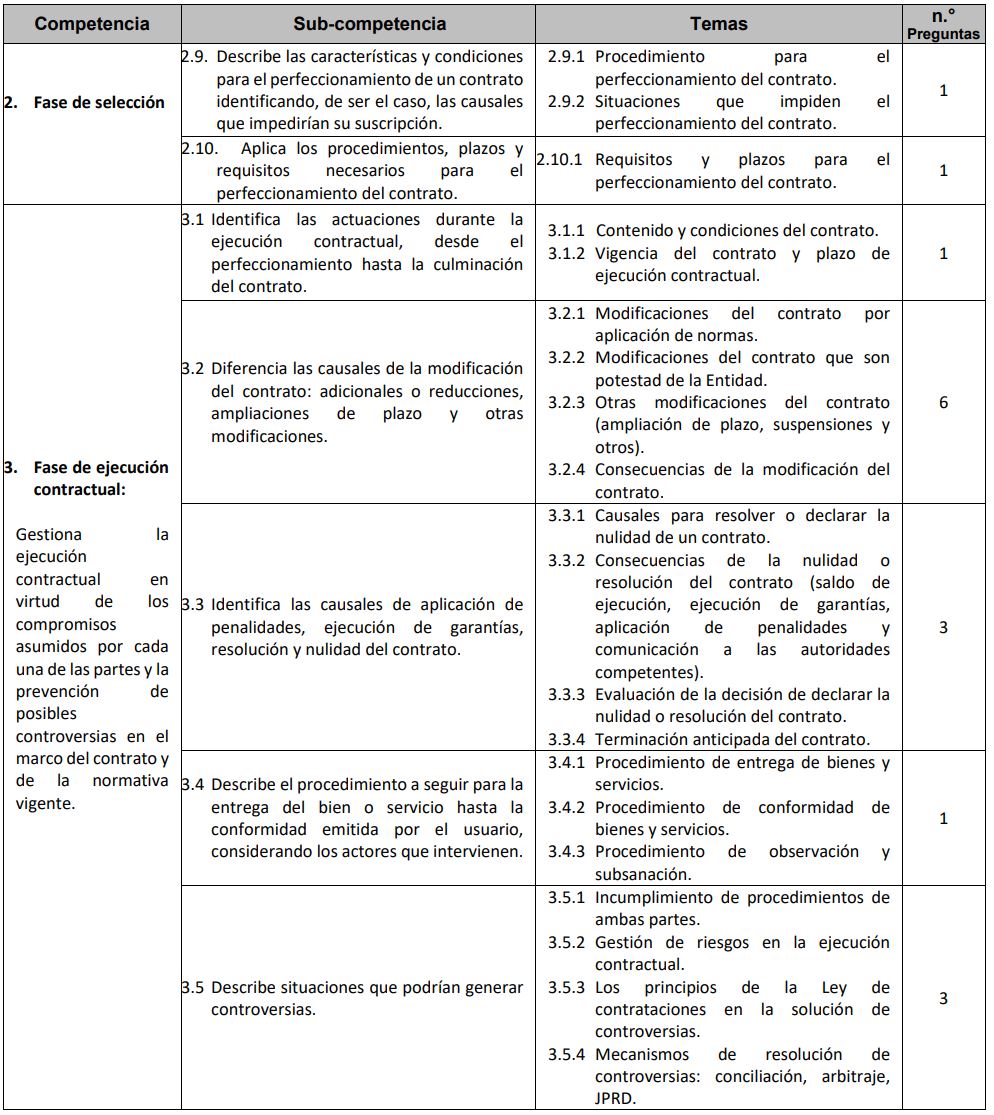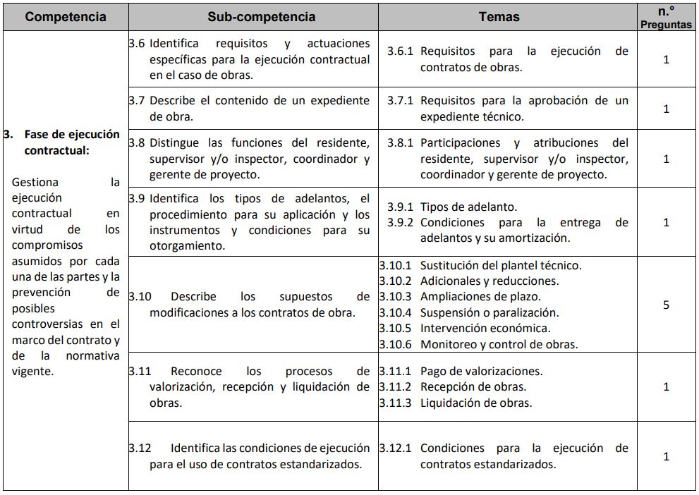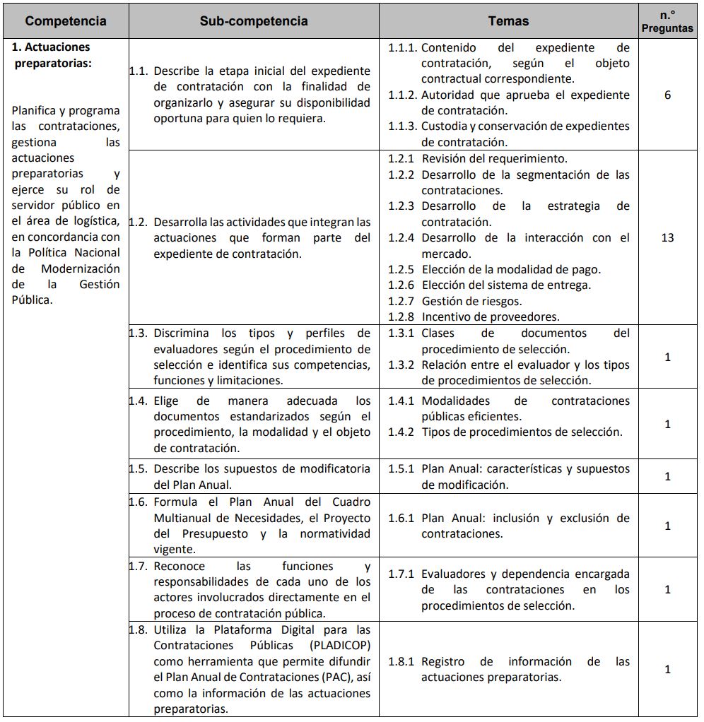 El Organismo Especializado para las Contrataciones Públicas Eficientes ha publicado el temario de evaluación del examen de la certificación de los profesionales y técnicos que laboren en los órganos encargados de las contrataciones de las entidades públicas.
