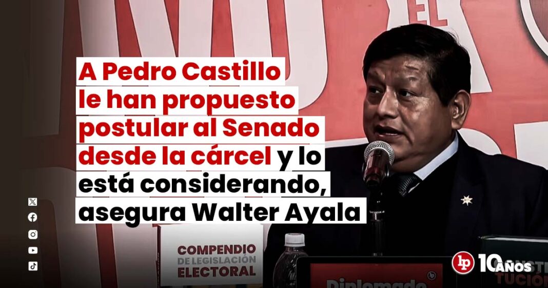 El exministro de Defensa y abogado del expresidente Pedro Castillo, Walter Ayala, afirmó en una reciente entrevista ofrecida a LP que a Castillo se encuentra evaluando su candidatura al Senado. Esta propuesta le habría sido planteada por el partido político Juntos por el Perú.