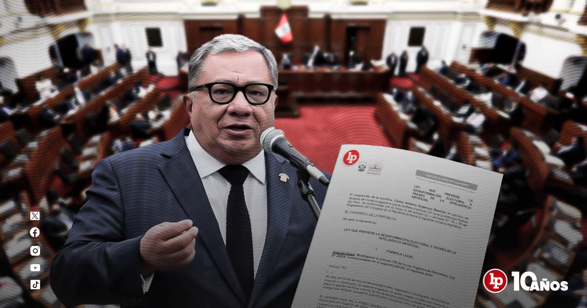 El congresista Carlos Anderson presentó un proyecto de ley que plantea, durante 90 días previos a las elecciones generales, prohibir la creación y distribución de material engañoso de audio, imagen o video que manipule o altere la apariencia física o la voz de los candidatos mediante la inteligencia artificial.