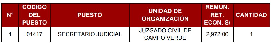 Objeto de la Convocatoria: El Comité de Selección de Personal Ad Hoc de la Corte Superior de Justicia de Ucayali, pone en conocimiento el proceso de selección de personal que se llevará a cabo para cubrir una (01) posición CAS, bajo el Decreto Legislativo N°1057 (CAS), conforme se detalla a continuación: