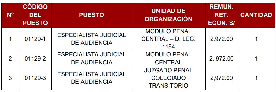 Objeto de la Convocatoria: El Comité de Selección de Personal Ad Hoc de la Corte Superior de Justicia de Ucayali, pone en conocimiento el proceso de selección de personal que se llevará a cabo para cubrir tres (03) posiciones CAS, bajo el Decreto Legislativo N°1057 (CAS), conforme se detalla a continuación: