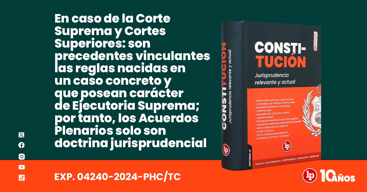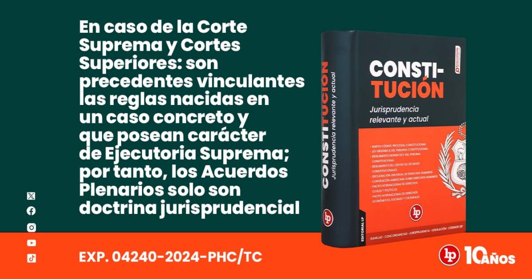 16. Sin embargo, el contenido de estos únicamente puede poseer carácter de doctrina jurisprudencial de unificación de criterios, careciendo del carácter vinculante que el legislador le otorgó a las Ejecutorias Supremas y las sentencias del Tribunal Constitucional, en tanto las mismas tienen la posibilidad de fijar dichos criterios al realizar sus análisis en base a casos concretos que ameritan la creación de reglas para la resolución de otros futuros que puedan encontrar en el precedente un caso base.