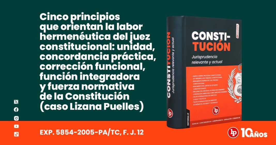 a) El principio de unidad de la Constitución: Conforme al cual la interpretación de la Constitución debe estar orientada a considerarla como un «todo» armónico y sistemático, a partir del cual se organiza el sistema jurídico en su conjunto.