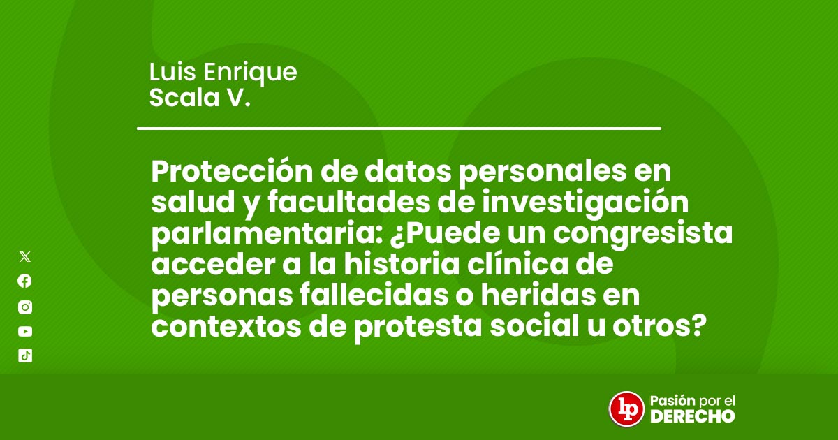 En los últimos años, los escenarios de protesta social en el Perú han dado lugar a reiterados requerimientos de información por parte de congresistas, quienes, en ejercicio de su función de fiscalización, han solicitado a los establecimientos de salud el acceso a datos personales en salud, en particular historias clínicas de personas heridas o fallecidas tras intervenciones policiales. Estas solicitudes involucran información protegida por su carácter confidencial, generando una tensión jurídica relevante entre el control político y la protección de la intimidad.