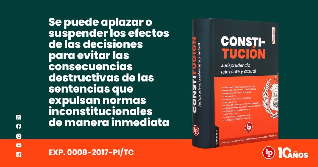 Fundamento destacado: 67. Este Tribunal Constitucional, a fin de evitar que se ocasionen los efectos destructivos que podría aparejar la eficacia inmediata de aquellas sentencias que expulsan del ordenamiento jurídico una norma declarada inconstitucional, tiene la potestad de aplazar o suspender los efectos de sus decisiones.