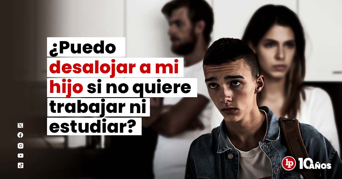Sí puedo desalojar a mi hijo si no quiere estudiar ni trabajar, opinó el abogado Oscar Pimentel Aranda, especialista en derecho inmobiliario. Sostuvo que el artículo artículo 424 del Código Civil solo respalda a los hijos hasta los 28 años cuando cursan estudios con éxito o cuando el hijo tiene una discapacidad.