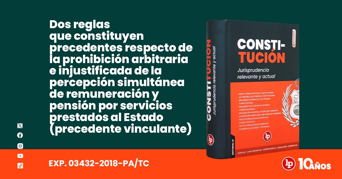 Fundamento destacado: 13. Teniéndose en cuenta que el Tribunal Constitucional no puede permanecer indiferente ante la situación de grave injusticia que generan el mencionado tratamiento legislativo dispar y la interpretación inconstitucional del artículo 40 de la Constitución, está en la obligación de adoptar criterios que garanticen la vigencia de los derechos fundamentales a la pensión y a la igualdad ante la ley; por consiguiente, el Tribunal Constitucional, en ejercicio de sus funciones de ordenación y pacificación, y haciendo uso de la facultad conferida por el artículo VI del Título Preliminar del Nuevo Código Procesal Constitucional, estima pertinente establecer un precedente respecto a la prohibición arbitraria e injustificada de la percepción simultánea de remuneración y pensión por servicios prestados al Estado: