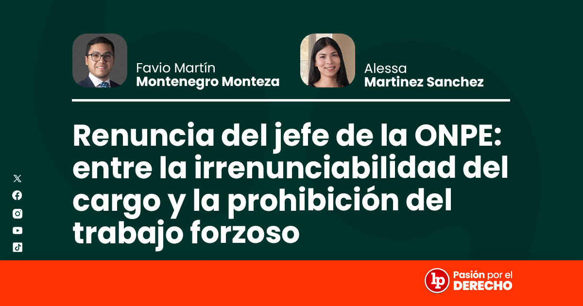 Sumario: 1. Introducción; 2. La irrenunciabilidad del cargo de jefe de la ONPE; 3. La irrenunciabilidad del cargo a la luz del razonamiento laboral-constitucional; 4. Conclusiones.