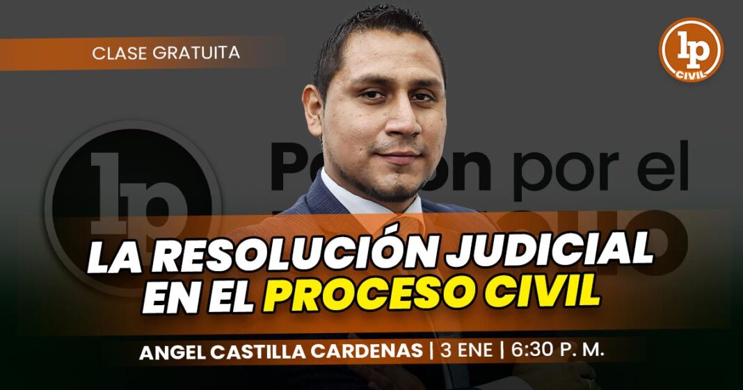 ¡Buenas nuevas! LP retransmitirá una clase gratuita sobre la resolución judicial en el proceso civil, a cargo del especialista Angel Castilla Cardenas, a través de la plataforma de Facebook y YouTube.