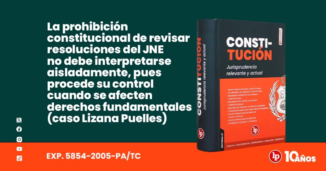En otras palabras, el «producto» resultante de realizar una interpretación aislada de los artículos 142º y 181º de la Constitución, viola los más elementales principios de interpretación constitucional (unidad de la Constitución y concordancia práctica), pues pretendiendo auspiciar la seguridad jurídica que debe informar a todo proceso electoral, «sacrifica» los derechos fundamentales, ya que los despoja de toda garantía jurisdiccional de protección.