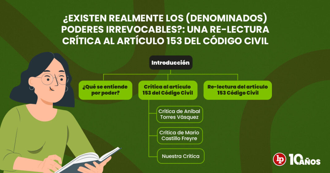 El artículo 153 del Código Civil peruano regula de manera insuficiente y, en algunos aspectos, contradictoria la figura del poder irrevocable. Ello genera problemas dogmáticos (pues tensiona con la naturaleza unilateral y esencialmente revocable del apoderamiento) y prácticos, en la medida que confunde a operadores jurídicos y usuarios del sistema.