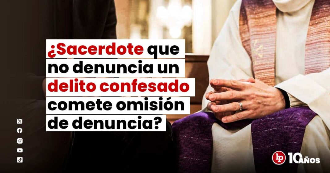 No, no comete omisión de denuncia, opinó el penalista Felipe Salas Zegarra. Explicó que la confesión está protegido por el secreto profesional, tiene respaldo constitucional y se considera un riesgo permitido, es decir, una situación aceptada por la sociedad que no genera responsabilidad penal.