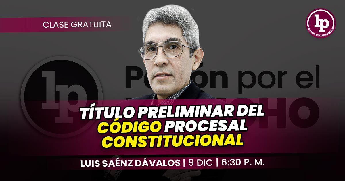 ¡Buenas nuevas! LP retransmitirá una clase gratuita sobre título preliminar del código procesal constitucional a cargo de Luis Saénz Dávalos, a través de la plataforma de Facebook y YouTube.