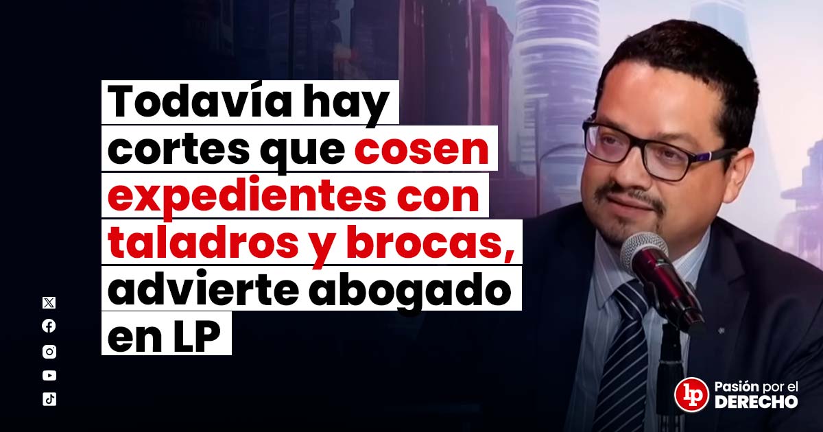 Durante una entrevista en LP, el abogado Luis Núñez reveló una situación que parece increíble en pleno siglo XXI. Señaló que aún existen despachos judiciales que perforan expedientes con taladros y brocas para poder coserlos.