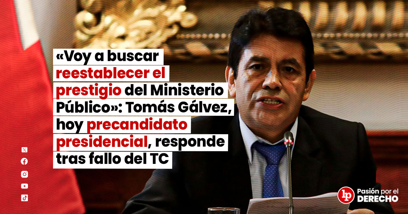 Luego que el Tribunal Constitucional (TC) anulara la destitución de Tomás Gálvez Villegas y ordenara restituirlo como fiscal supremo titular, el abogado se pronunció al respecto y aseguró que espera retomar sus funciones en aproximadamente «tres semanas».